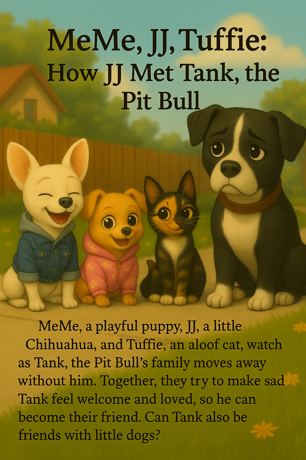 When JJ the gentle little Chihuahua meets Tank the big pit bull for the very first time, he isn’t sure what to expect. Tank looks strong… maybe even a little scary! But JJ soon discovers something surprising — Tank isn’t scary at all. He’s actually shy, lonely, and unsure how to make new friends.